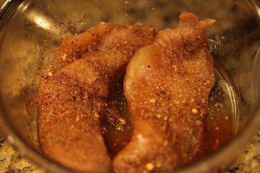 I let the bok choy sit while I cook up my pre-marinated fish. I marinated four filets for a few hours in a few tablespoons of soy sauce, garlic, salt, coriander, cumin, szechuan seasoning, and Cavenders. I grabbed two and pan-fried them a bit in olive oil. White fish is firm but flaky, and cooks very fast.