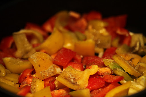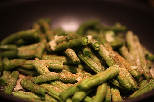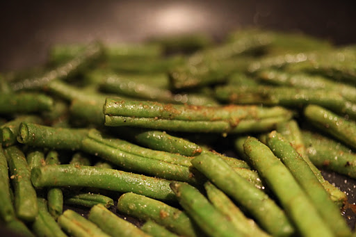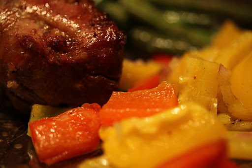 While the pork was cooking, I enjoyed some wine and washed and prepped my vegetables for tasty, healthy sides to compliment the dish. As the pork was nearing completion, I cooked fresh green beans with light seasoning (coriader, cumin, salt, pepper, ground mustard) and a touch of olive oil and minced garlic in a pan covered with a lid to steam them as they cooked. In a separate pan, I sauteed chopped red and yellow bell peppers with the exact same spices as well as some chopped red onion, again, with a lid. Both of these were cooked on medium-low heat so that I could take my time while the pork was finishing up. Both vegetables were cooked through just enough to remain crispy.