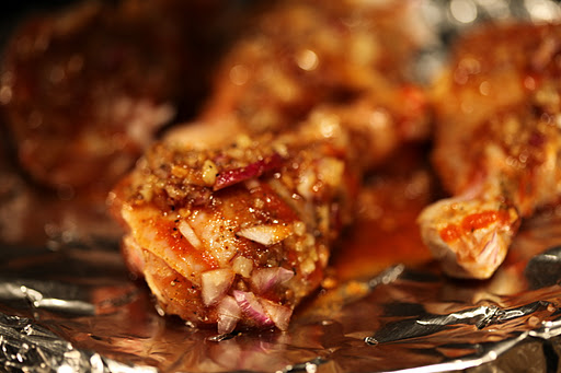 First up, a simple dinner that may not be the absolute healthiest but is a nice treat in moderation. I had some chicken drumsticks in the freezer that I thawed last night and marinated today.