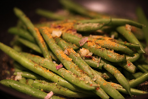 In the meantime, I washed and prepped some green beans. I had some remaining chopped onion and minced garlic that went into the saute pan along with the beans. I added some Cavenders, coriander, cumin, and some Thai spice mix to the beans. Just enough to add some flavor that I thought would compliment the sweet and spicy drumsticks. I added a little water in the pan and covered it so it would steam nicely. I then proceeded to forget about it and overcooked it just a bit. Not so much that the beans weren’t edible, but the heat dried out the beans and they lost the crunchiness that I prefer. I’m sure much of the nutrients were lost as well, but they still tasted good.