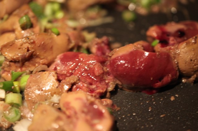 Not everyone likes chicken liver, but I do. A lot. It’s so good for you, and so tasty, AND I like the texture. So there. Apparently chicken liver is also high in cholesterol, but that’s not a problem for me, thankfully.