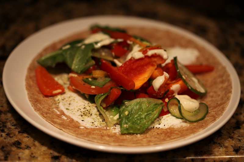 Earlier today, I was craving a vegetable wrap. Instead, I got vegetarian soft tacos with a side salad. That side salad turned out to be ginormous and so I had to bring most of it home.
