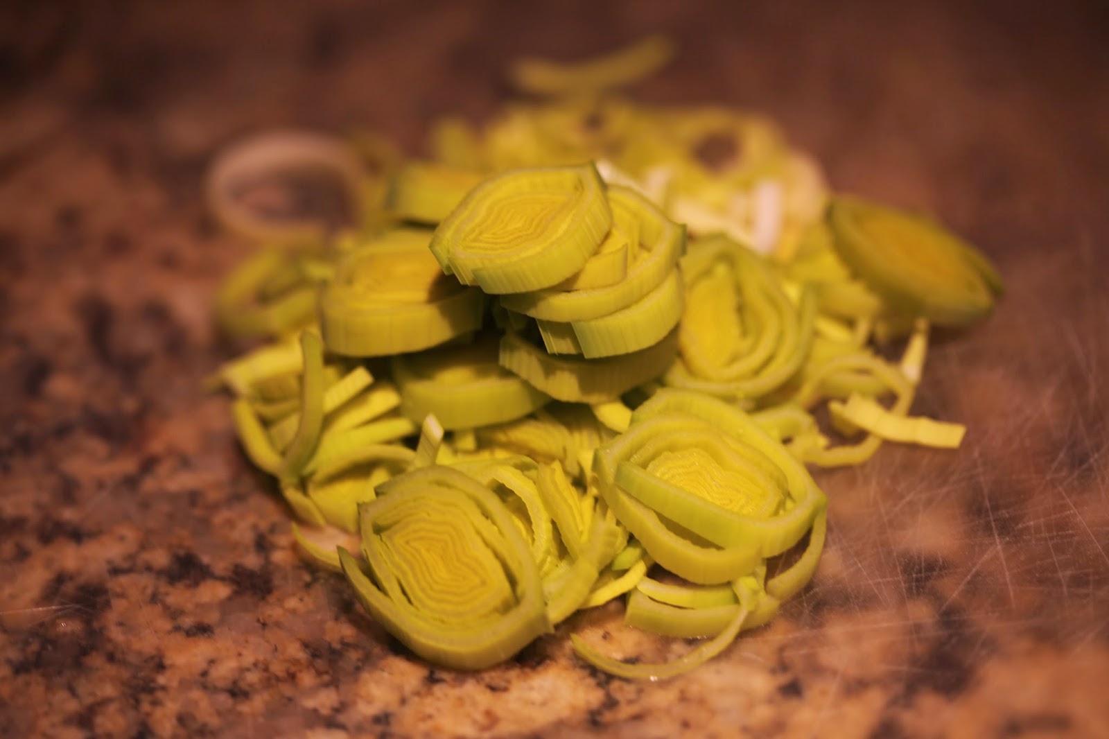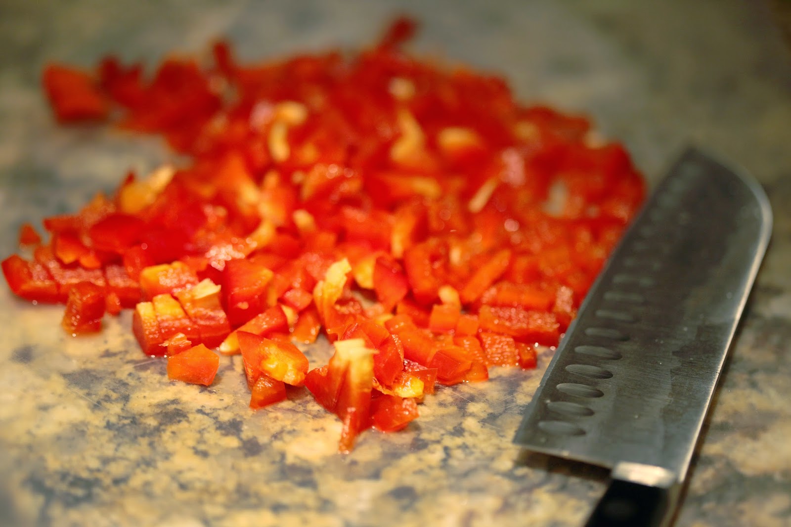 Next step was to prep all the vegetables. I sliced some leeks, and finely chop some jalapeno pepper (optional) and red bell pepper and set those aside.